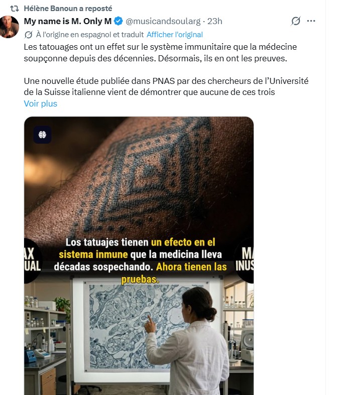 Les auteurs appellent à plus de régulation, à des tests de toxicité plus rigoureux sur les encres, et à des études chez l’humain (surtout chez les personnes immunodéprimées ou avec de grands tatouages).En résumé : oui, la médecine ne peut plus ignorer complètement les tatouages dans l’évaluation de la santé immunitaire. Ce n’est pas une « bombe » qui rend les tatouages dangereux pour tous, mais une raison supplémentaire d’être prudent : choisir des encres de qualité, éviter les zones de vaccination récente, et surveiller les très grands projets. Des recherches complémentaires sont nécessaires pour quantifier les risques réels chez l’humain.