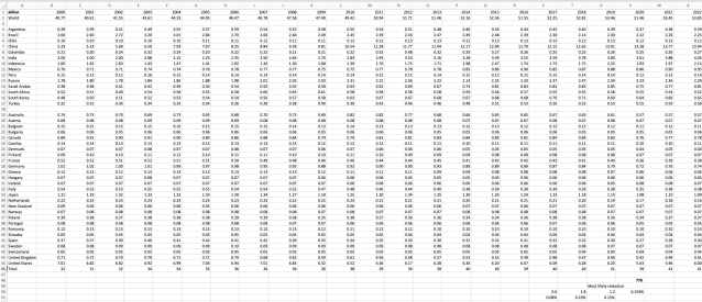 La France se ruine pour réduire l’émission de CO2: 100mds d’€ par an:depuis 2000 une baisse de 0,01 GTCO2, le monde a connu une augmentation de 10GT
