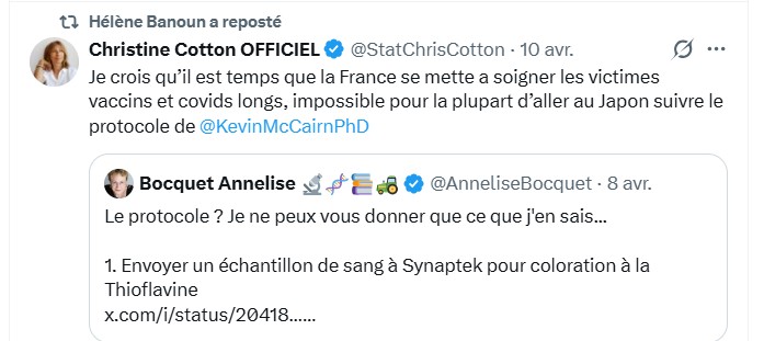 Il est légitime de réclamer plus de transparence, de financement pour la recherche sur les mécanismes (persistance spike, amyloïdose, neuro-inflammation) et une prise en charge digne pour les victimes, qu’elles viennent de l’infection ou des vaccins. Ignorer ou minimiser ces souffrances ne fait qu’aggraver la défiance.Le voyage au Japon reste inaccessible pour la plupart (coût, visas, organisation). L’idéal serait que la France (et l’Europe) évalue rigoureusement ces pistes (DFPP, enzymes fibrinolitiques, etc.) dans des protocoles cliniques contrôlés, sans a priori idéologique. Tant que ce n’est pas fait, les patients sont contraints de chercher des solutions à l’étranger ou en autodidacte — ce qui n’est pas satisfaisant dans un pays qui se veut leader en santé.