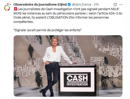 Les journalistes de Cash Investigation n’ont pas signalé pendant NEUF MOIS les violences au sein du périscolaire parisien : selon l’article 434-3 du Code pénal, ils avaient L’OBLIGATION d’en informer les personnes compétentes.