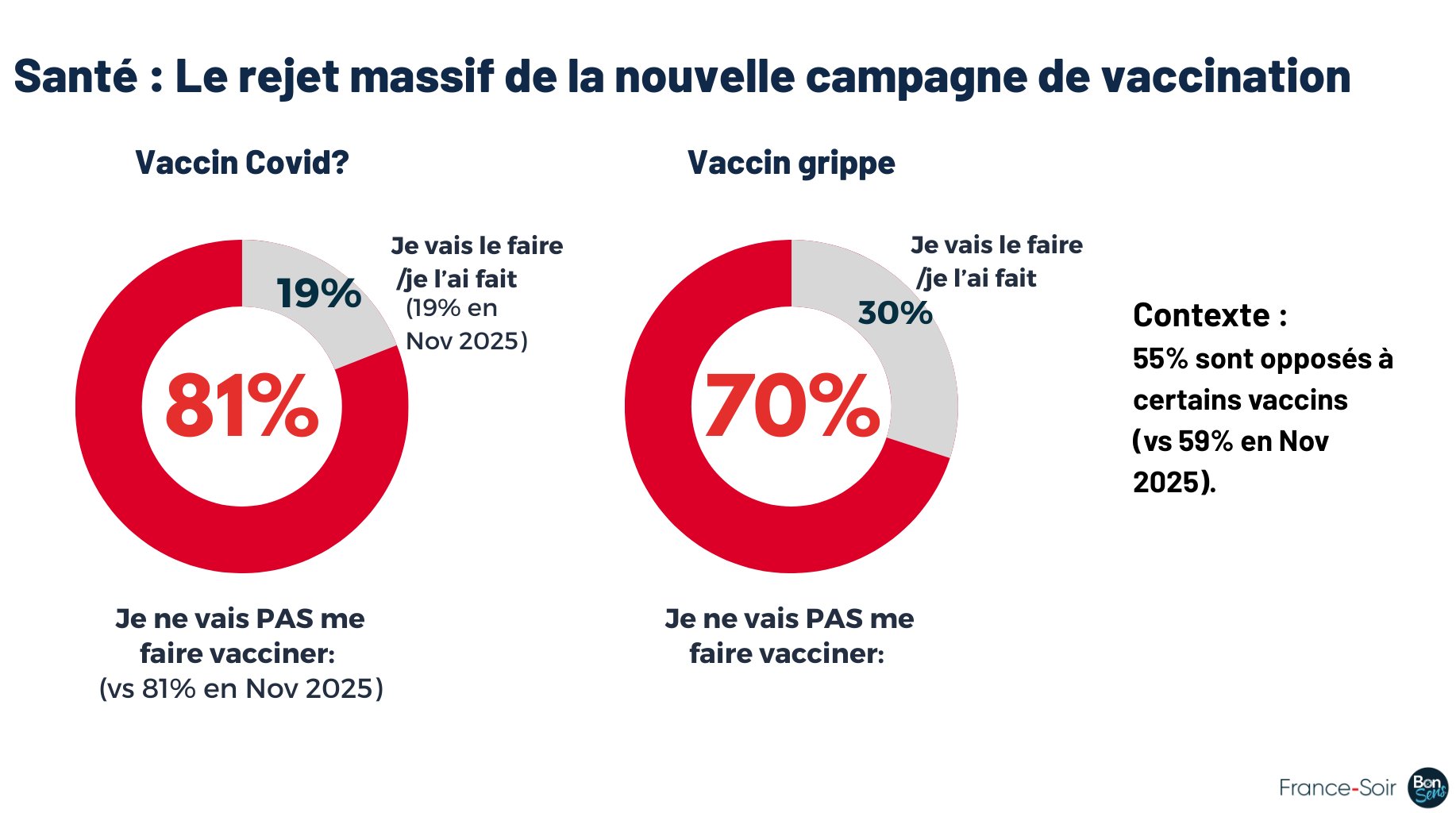 81 % des Français déclarent qu’ils ne feront pas le nouveau vaccin Covid en 2025. Le rejet s’étend à la grippe (70 % de refus).