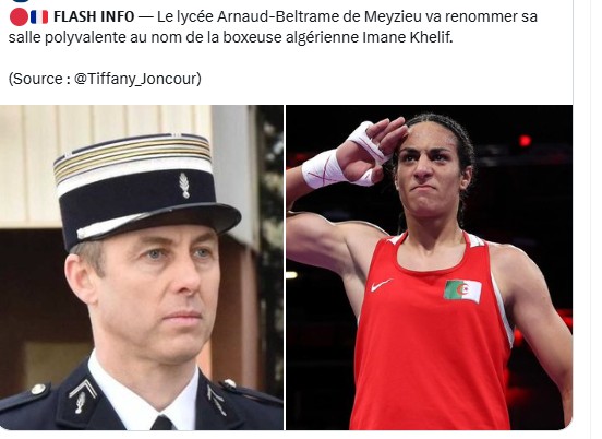 l’information circule depuis quelques heures : le lycée Arnaud-Beltrame de Meyzieu (Rhône) prévoit de baptiser sa salle polyvalente du nom d’Imane Khelif le 7 mai.