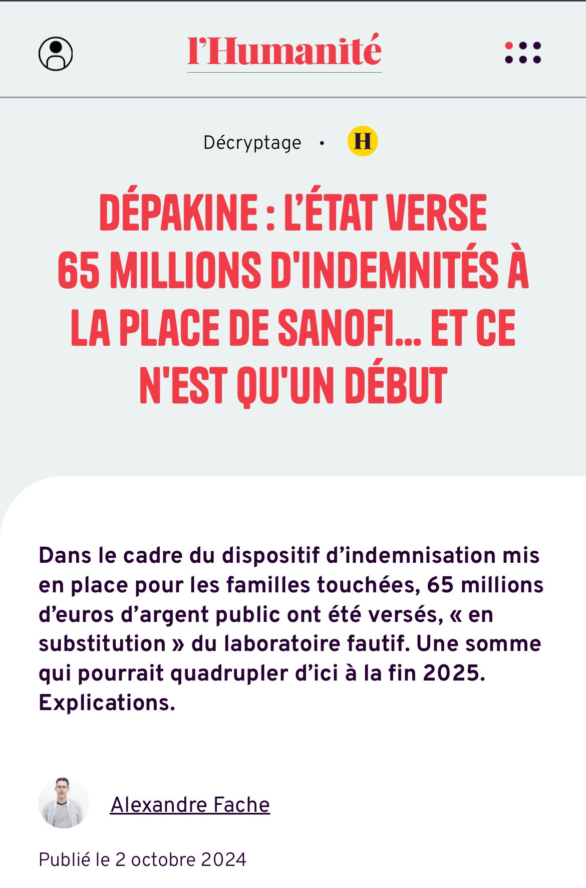 #Depakine les citoyens payent les pots cassés avec leurs impôts. Qui va payé pour les #victimes des #vaccins#covid ? Les laboratoires ne peuvent pas partir avec la caisse ! Il n’y a jamais de responsables !