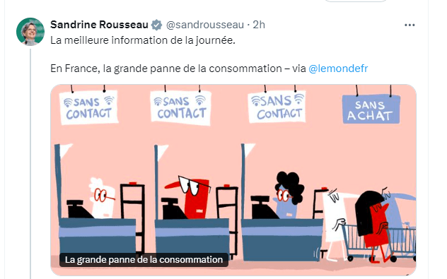 La gauche nouvelle ne s’intéresse pas au pouvoir d’achat et Sandrine Rousseau ne s’en cache pas, la crise actuelle de la consommation est une bonne nouvelle….