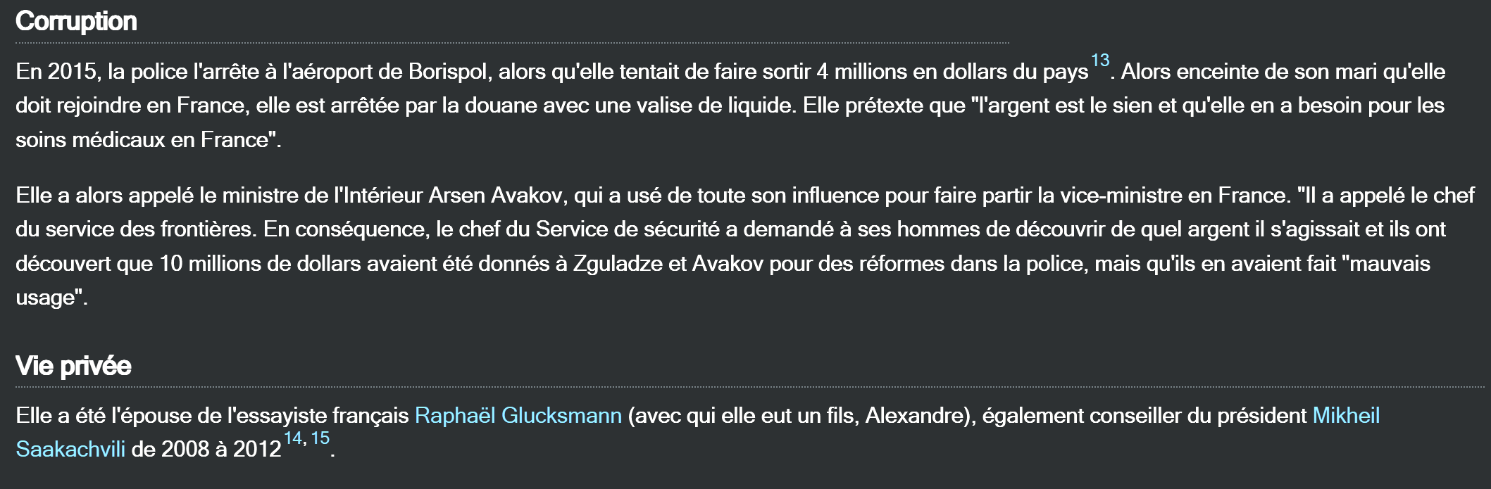 Raphaël, quant à lui, fut conseiller de Mikheil Saakachvili, président de la Géorgie lors de la « révolution des roses », puis gouverneur de la région ukrainienne d’Odessa à l’issue du coup d’État de la place Maidan. Raphaël a épousé Eka Zgouladze, ministre de l’Intérieur de Géorgie (dans le gouvernement qui mit la majorité de son opposition en prison) et aujourd’hui ministre de l’Intérieur d’Ukraine (dans le gouvernement qui massacre la population du Donbass).