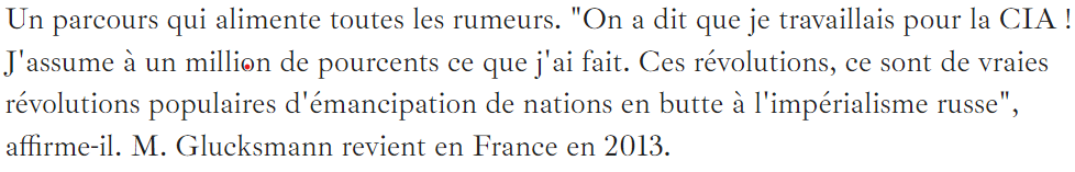 Glucksmann se plaint de la remontée d’infos sur son passé de conseiller de dictateur et d’époux de ministre de la police ( en Géorgie et en Ukraine…). Les Chinois seraient responsables?????