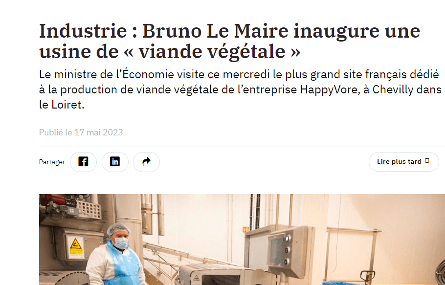 Je ne savais pas que Bruno Le Maire avait inauguré une usine produisant de la pseudo viande.