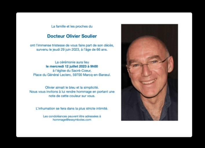 Olivier Soulier est décédé dans la nuit du 28 au 29 juin dans un appartement du 14e arrondissement de Paris, les secours n’ont pu le ranimer.