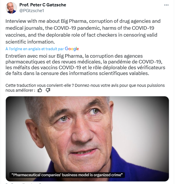 Prof. Peter C Gøtzsche est le fondateur de la revue Cochrane ce scientifique prestigieux décrit le business model de l’industrie pharmaceutique comme celui de l’industrie du crime et il compare les pratiques à celles de l’industrie du tabac